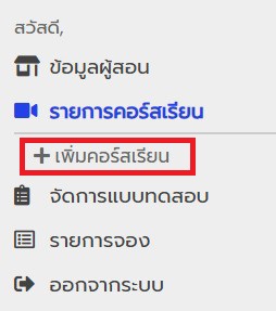 3. คลิกปุ่ม "รายการคอร์สเรียน" และ คลิกปุ่ม "เพิ่มคอร์สเรียน"