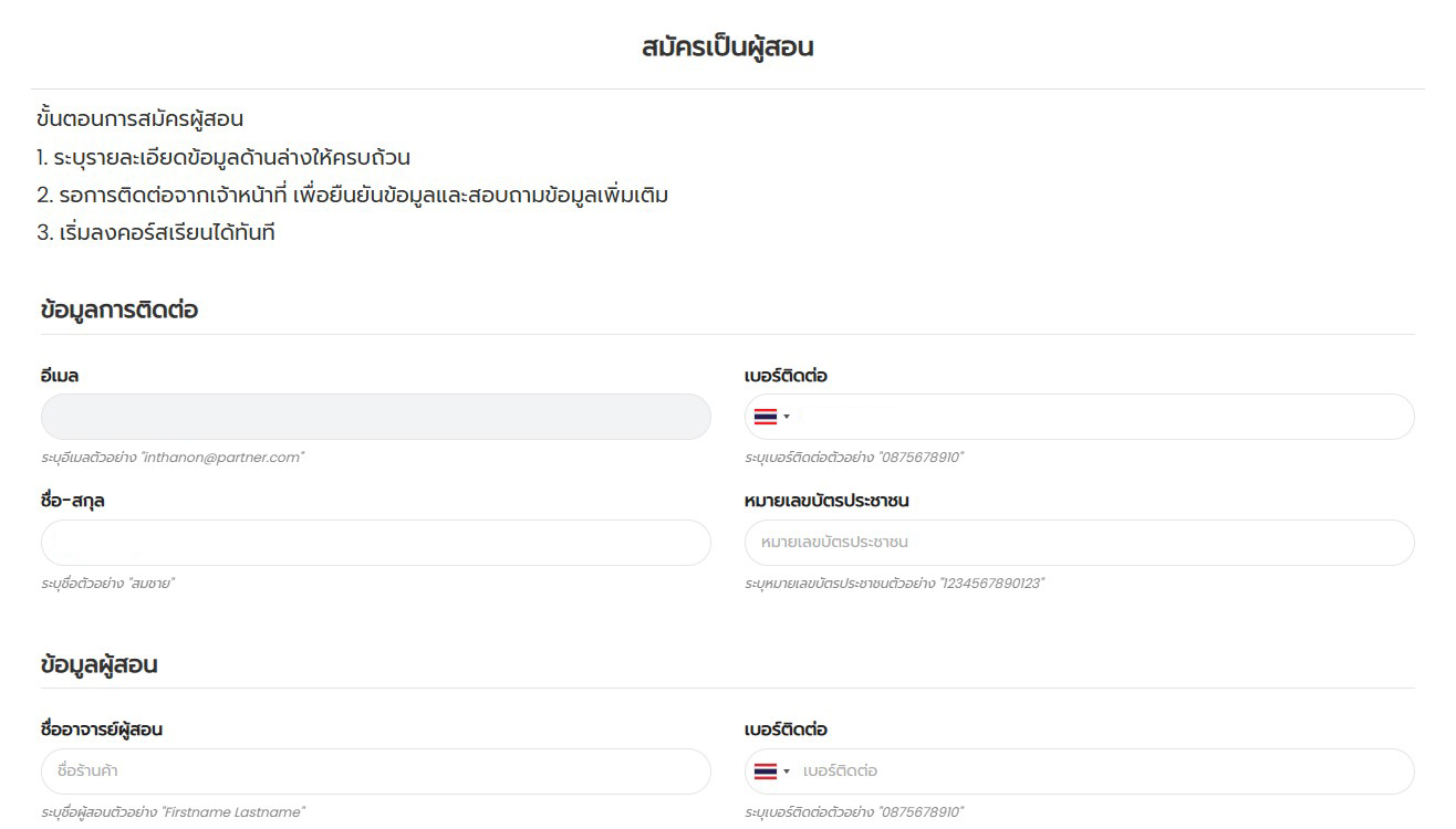 2. คลิกปุ่ม "สมัครผู้สอน"