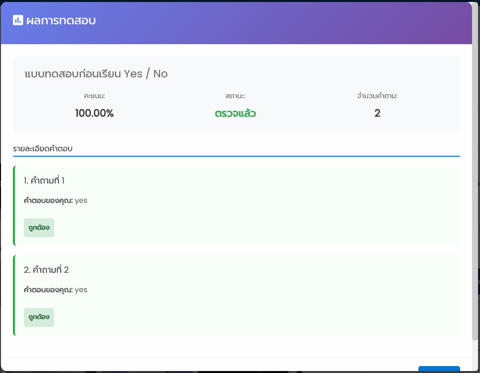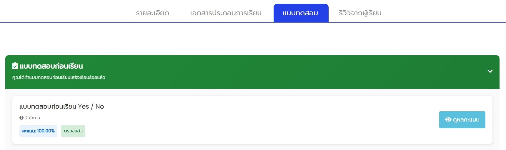 7. ดูผลทดสอบก่อนการเรียน